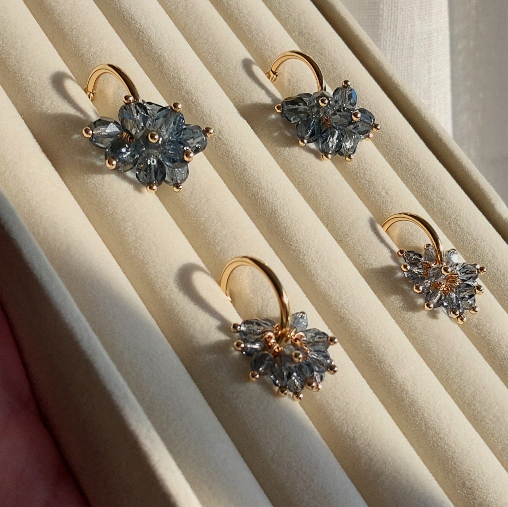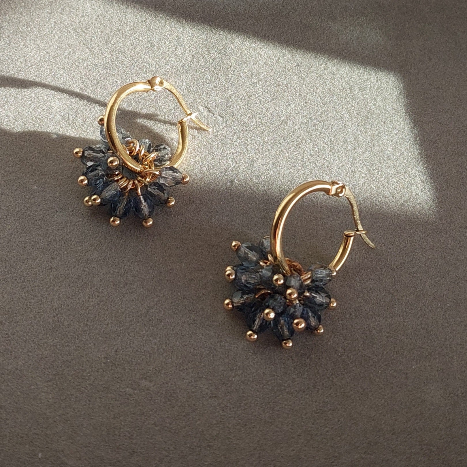 Kauniin siro ja kevyt rengasmallinen korvakoru, jonka irtonainen helmiosa elää kauniisti kantajansa mukana. Upea siniharmaa, keskiyön sävy on lumoavan tyylikäs.